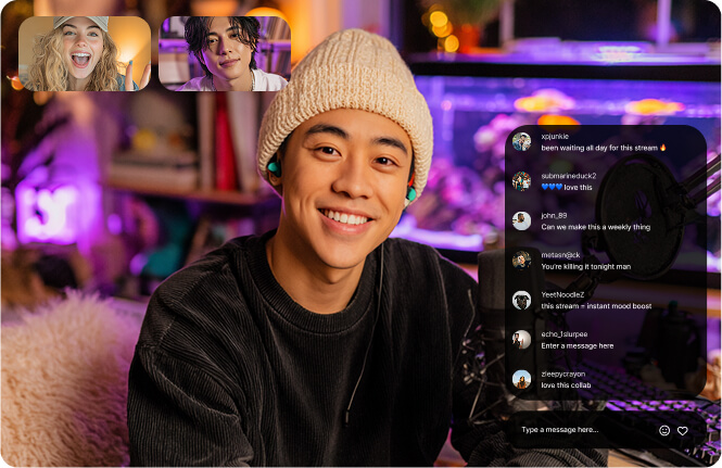 Co-host streams, drop commentary, or build something new side-by-side. Collaboration becomes an event when the spotlight is shared.